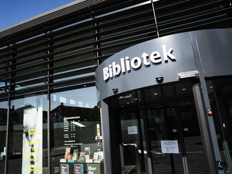 Uden for åbningstid kan du aflevere i en brevkasse på siden af Stadsbiblioteket.